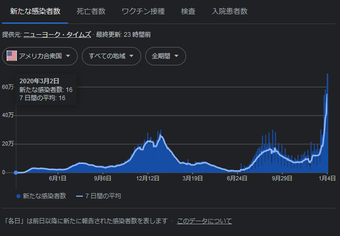処理遅れとはいえ、先週の時点でも50万にの新規感染が出ています。